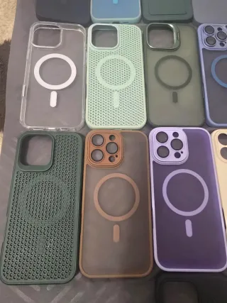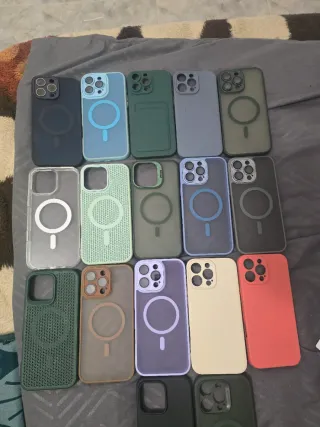 Variedad de fundas para iPhone 16 Pro Max. - Funda azul claro con aro magnético. - Funda verde oscuro con ranura para tarjeta. - Funda azul grisáceo. - Funda verde oscuro con textura. - Funda transparente con aro magnético. - Funda verde menta con textura. - Funda gris oscuro. - Funda azul con aro magnético. - Funda gris oscuro con aro magnético. - Funda morada translúcida con aro magnético. - Funda beige. - Funda roja. - Funda negra. - Funda verde oscuro. Vendo c/u a 4€ y si desean varias las dejo a buen precio