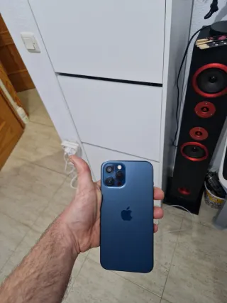 Teléfono móvil en buenas condiciones. - Modelo: iPhone 12 Pro Max De 128 gb de almacenamiento 77 porciento de batería aguanta todo el día perfectamente Siempre con funda y cristal templado se puede ver y probar siempre muy cuidado, se entrega con su caja cable de carga cristal templado puesto en pantalla que está impoluta y funda de regalo transparente que es la que se ve en las fotos