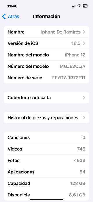 Teléfono móvil iPhone 12 con acabado en color azul. - Capacidad de almacenamiento de 128GB. -Tiene solo desgaste basico, lo demas esta como nuevo bien cuidado siempre com funda y cristal -Todo piezas originales -Salid bateria 76% ESTE ES ULTIMO PRECIO