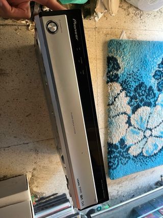 Receptor de audio y video de la marca Pioneer. - Diseño elegante en color plateado. - Panel frontal con detalles en negro. - Etiqueta amarilla con información de advertencia. - sin comprobar pero dn muy buen estado