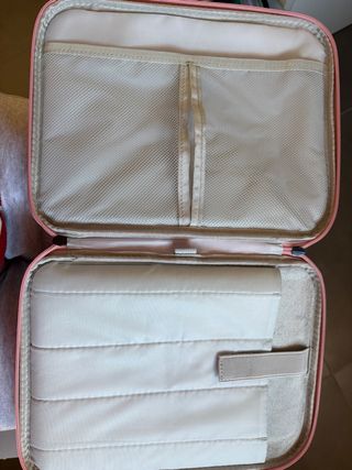 Funda protectora para tablet en color rosa. - Material textil. - Asa lateral. - Bolsillo exterior.