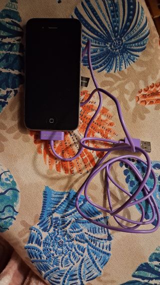 Teléfono móvil iPhone 4 en color negro. - Modelo A1387. - Fabricado en China. Está obsoleto. Se vende con el cable.