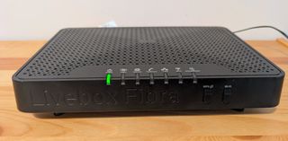 Router Orange Livebox Fibra, con ONT integrada. Está como nuevo, se entrega con su caja, instrucciones y fuente alimentación original. Funciona perfectamente. - Indicadores LED en la parte frontal. - Botones WPS y Wi-Fi en la parte frontal.