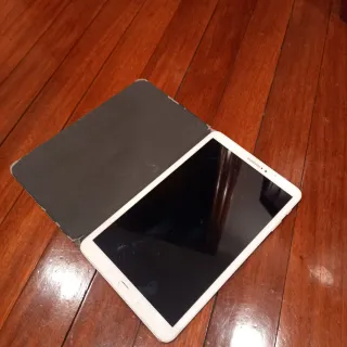 Tablet Samsung Galaxy Tab A T580 en color blanco. - Pantalla de 10.1 pulgadas. - Conectividad Wi-Fi. - Almacenamiento interno de 16GB. NO enciende. NO carga. Pantalla en perfecto estado. Para componentes y piezas. Se regala funda original Samsung.