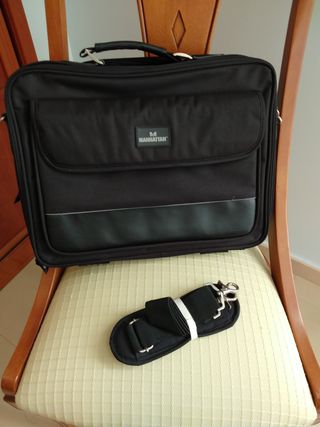MALETÍN NEGRO PARA ORDENADOR PORTÁTIL, MARCA MANHATTANM CON ASA DE MANO ACOLCHADA Y BANDOLERA AJUSTABLE PARA HOMBRO. DIMENSIONES: 40x31x7 CM - COMPARTIMENTO PRINCIPAL ESPACIOSO, CIERRE CON CREMALLERA - COMPARTIMENTO TRASERO PARA MANUALES, DISKETTES, ... CIERRE CON CREMALLERA - BOLSILLO FRONTAL CON SOLAPA Y CIERRE CON VELCRO - BOLSILLO TRASERO SIN SOLAPA Y CIERRE CON VELCRO - ASA DE MANO ACOLCHADA - CORREA DE HOMBRO AJUSTABLE Y EXTRAÍBLE