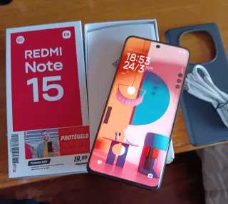 Teléfono móvil Xiaomi Redmi Note 15 con acabado en color negro. Incluye cargador , carcasa y protector de pantalla de 20 euros - Capacidad de almacenamiento: 128 GB. - Funda protectora de color gris. - Cable de carga.