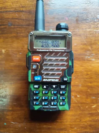 Vendo Baofeng UV-5R Plus en color camuflaje, en muy buen estado y con caja original. Ideal para senderismo, airsoft, caza, rutas en montaña o como equipo de comunicación de respaldo. 🔹 Características: Doble banda VHF/UHF (136-174 MHz / 400-520 MHz) Potencia hasta 5W Pantalla dual Radio FM integrada Linterna LED Batería de larga duración 📦 Incluye: Walkie Baofeng UV-5R Plus camuflaje Antena Batería Cargador de sobremesa Clip cinturón Caja original
