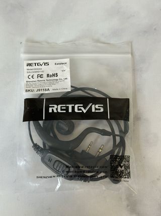 Vendo auricular + micrófono Retevis modelo EEK004, completamente nuevo, sin abrir. Ideal para walkie-talkies, intercomunicadores, seguridad, eventos o trabajo en exteriores. Se entrega tal como se ve en la foto, en su bolsa original precintada. 📌 Conector doble jack (tipo Kenwood estándar)