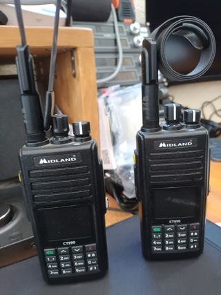 2 x Midland CT990 EB BI BANDE VHF UHF. BATTEY 3600mA. Power 10 watts. Frequency 144 146 mhz. 430 440 mhz. LONG RANGE MILITARY ANTENNA. Waterproof IP 67. Range 12 km. For information each CT990 is sold new around 160 euros each (320 both units)! For a total value up to 320 euros!!It's professional material!. Fixed price, no négociation otherwise you will be blocked. ULTIMO PRECIO