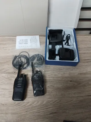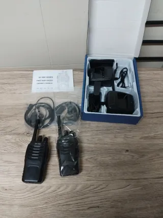 Se venden dos walkies Baofeng BF-888S, ideales para comunicación. - Incluye dos walkies. - Cargadores y auriculares. - Manual de instrucciones.