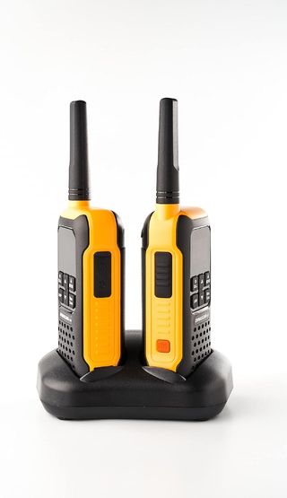 Set de dos walkie talkies Geonaute ONchannel 510 en color negro y amarillo. Incluye base de carga doble y manual. - Diseño compacto y ergonómico. - Pantalla digital. - Correa de sujeción.
