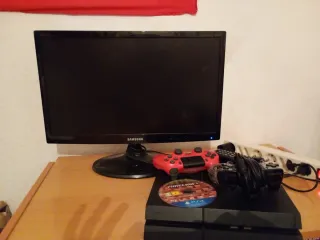 Consola PlayStation 4 en color negro, con dos mandos. - Incluye un mando en color rojo. - Incluye un mando en color negro. - Incluye TV Samsung con mando y Minecraft .