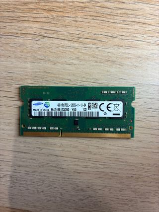 Módulo de memoria RAM Samsung de 4GB. - Modelo: M471B5173DBO-YKO - DDR3L 1.35V. 4GB - Tipo: PC3L-12800S - Velocidad: 12800MB/s