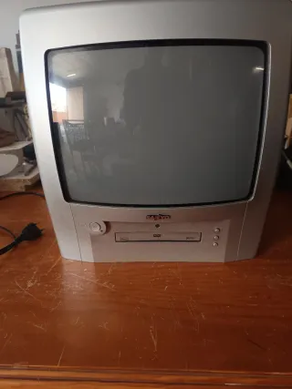 Televisor Sanyo de color plata con reproductor de DVD integrado. - Pantalla de televisión. - Reproductor de DVD. - Diseño compacto. FUNCIONANDO PERFECTAMENTE