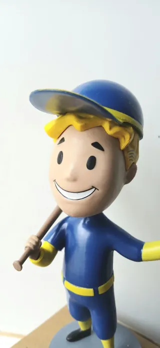 Figura coleccionable del personaje Vault Boy, de la increible saga Fallout. Modelo que representa la pose Big Leagues, (grandes ligas) con un bate de béisbol. Incluye caja