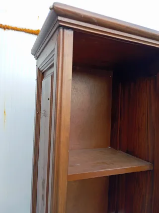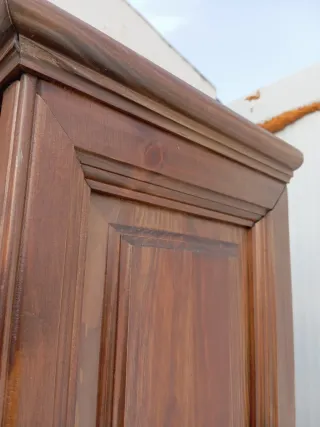 Columna de madera que necesita restauración. Ideal para proyectos de bricolaje o para darle un nuevo aire a tus muebles. - Material: Madera. - Color: Marrón.