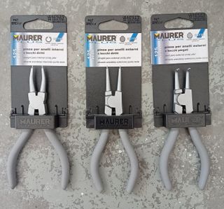 Set alicates arandelas 125mm compuesto por: - 1 Alicate arandelas interiores punta recta - 1 Alicate arandelas exteriores punta recta - 1 Alicate arandelas exteriores punta curva Característitas: - Longitud: 125 mm. - Cabeza en acero cromo vanádio - Mango recubierto de goma antideslizante, agarre engomado. - Los mangos tienen muelles de cierre automático.