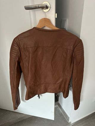 Chaqueta estilo biker de la marca Bershka. - Color marrón rojizo. - Cierre de cremallera. - Bolsillos frontales con cremallera. - Cinturón ajustable en la parte inferior.