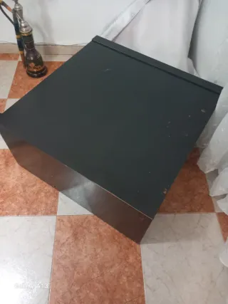 Mesa auxiliar con un diseño moderno y elegante. Tiene algún defecto ver fotos, de ahí su precio - Acabado en color negro y marrón. - Fabricada en madera.