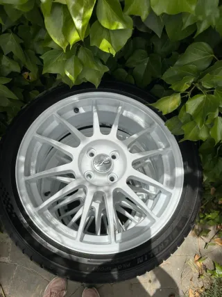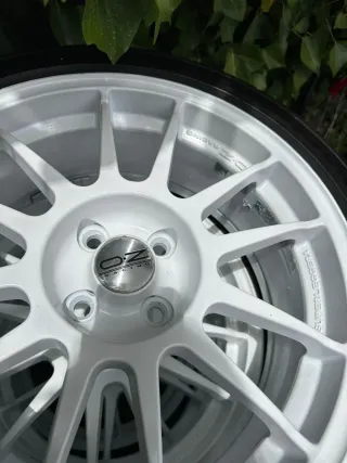 Juego de llantas OZ Racing en color blanco. Diseño deportivo y elegante. - Llantas de aleación. - Acabado blanco brillante. - Logo OZ Racing visible. -Neumaticos al 90 Solo venta en persona!!