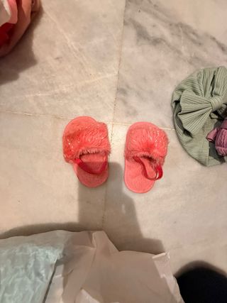 Adorables zapatitos de pelo para bebé, perfectos para mantener sus pies calentitos. - Material suave y peludo. - Color rosa brillante. - Tira elástica para un ajuste seguro.