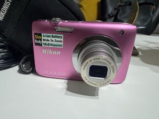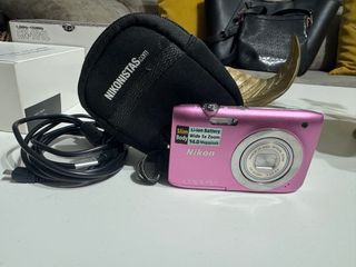 Cámara digital Nikon Coolpix S2600 en color rosa. Compacta y fácil de usar. - Sensor de 14.0 Megapíxeles. - Zoom óptico 5x. - Batería Li-ion. - Incluye funda y cables de carga para poder cargar con cualquier cargador de movil, tarjeta de memoria 4Gb. Canon, ixus, Olympus, Sony, Samsung, Panasonic, Lumix, leica,.