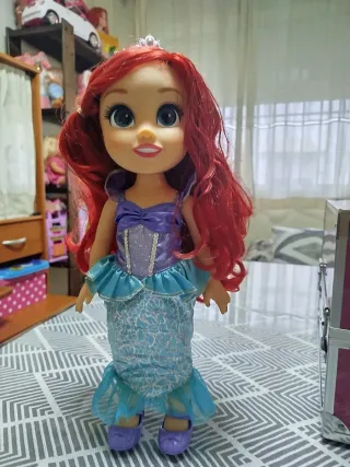 Muñeca de la Princesa Ariel de Disney, inspirada en el personaje. - Vestido de sirena con detalles brillantes. - Corona de princesa. - Cabello largo y rojo característico.