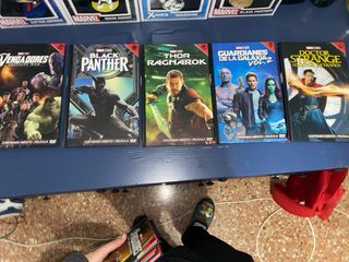 Colección de películas de Marvel Studios en formato DVD. Incluye títulos como: - Vengadores - Pantera Negra - Thor Ragnarok - Doctor Strange - Guardianes de la Galaxia - Capitán América - Thor - Iron Man 3