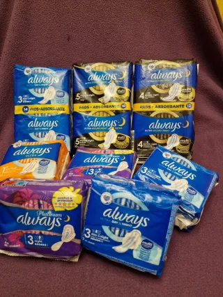 Lote de compresas mujer de diferentes tipos y cantidades