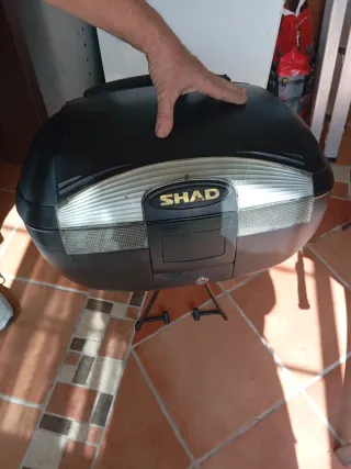 Baúl grande para moto Suzuki 600 GSX. - Marca SHAD. - Color negro. - Estilo touring. Herraje, soporte y baúl gran capacidad