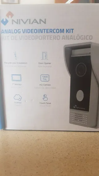 Kit de videoportero analógico NIVIAN. - Cámara HQ de 1000 TVL. - Monitor de 7 pulgadas. - Abrepuertas. - Panel táctil. - Apto para exteriores. - Facilita la reutilización de instalaciones existentes.