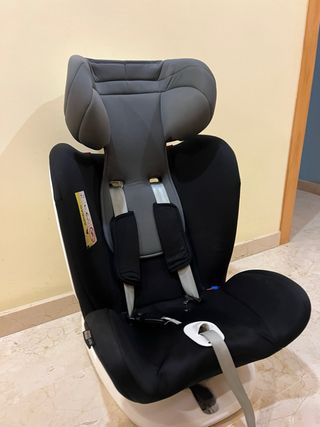 Silla de coche para bebé, adaptable a diferentes grupos de edad. - Diseño en color negro y gris. - Base con sistema Isofix. - Incluye arnés de seguridad de 5 puntos. - Reposacabezas ajustable. - CON ROTACIÓN 360 GRADOS Silla de Coche Grupo 0123 (0-36 kg)