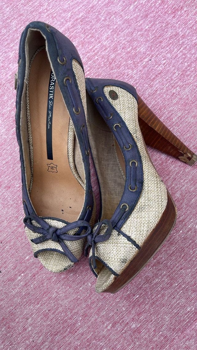 Tacones Drastik Beige y Azul