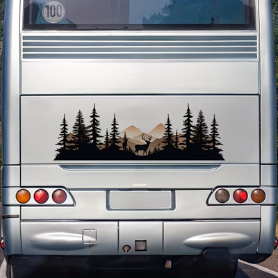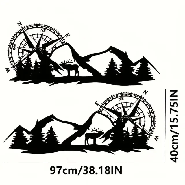 Pegatina Decorativa Montaña Ciervos Pájaros