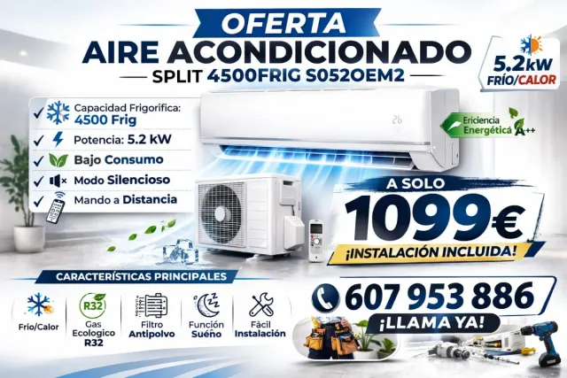 5,50 €OFERTA de Aire Acondicionado Split 3000 Frigorías