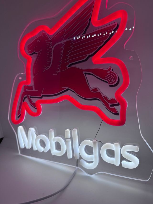 Cartel Neón LED Moderno Mobilgas Rojo