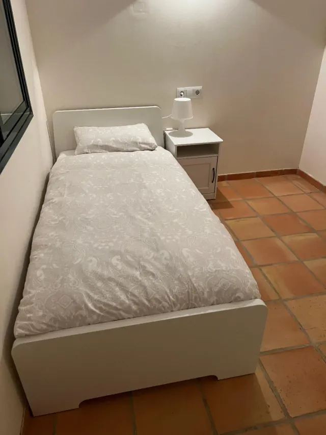 Cama doble con mesitas y colchón