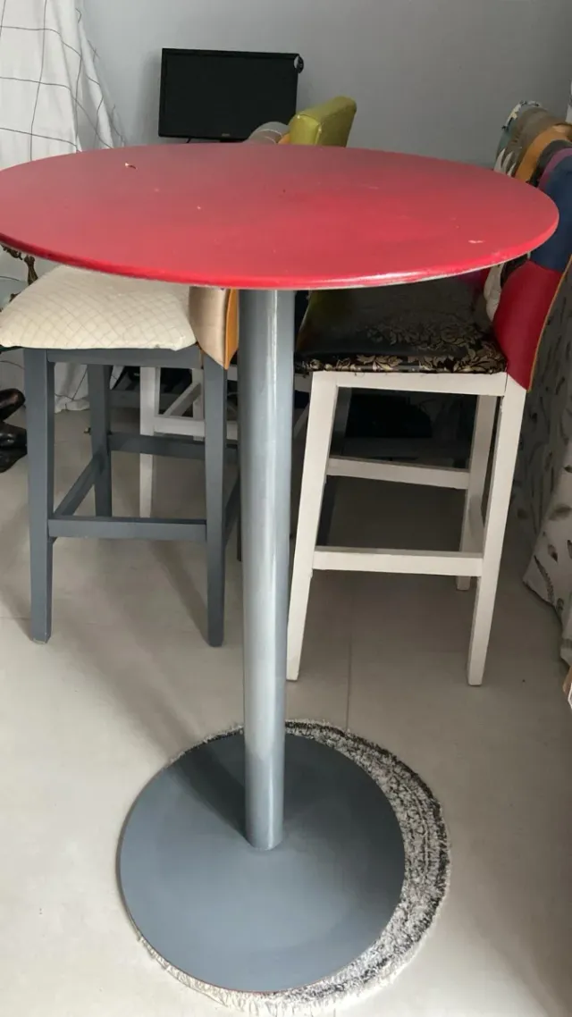 Mesa redonda roja con 4 sillas