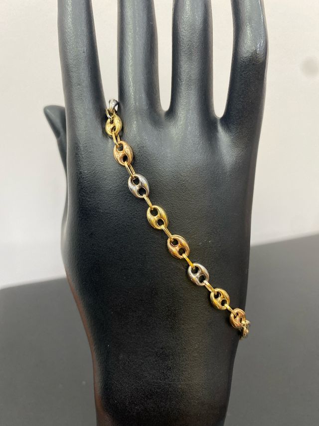 Pulsera Oro 18k Tricolor Eslabón Grano Café