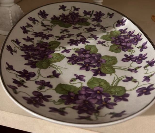 Jarrón porcelana flores moradas