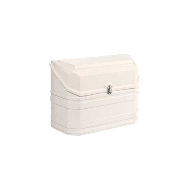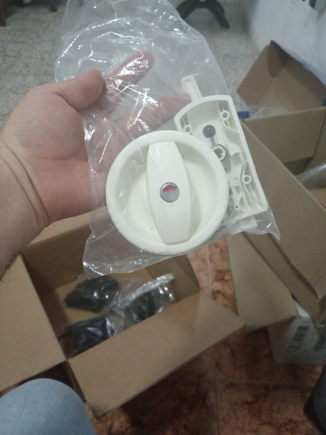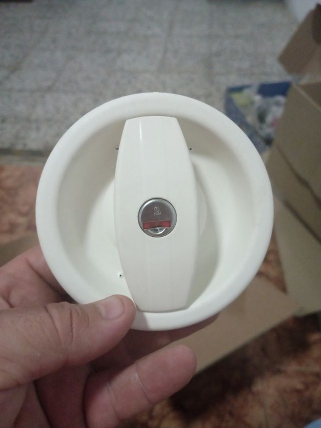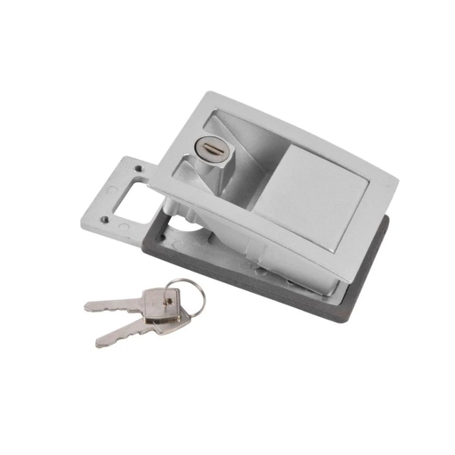 Cerradura caravana blanca con marcas de tornillos