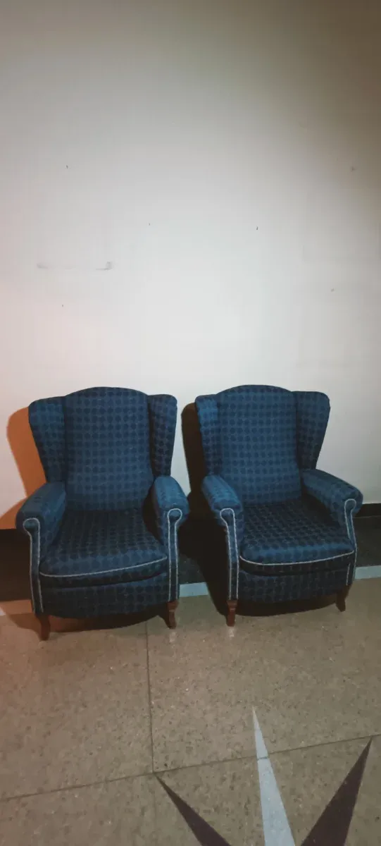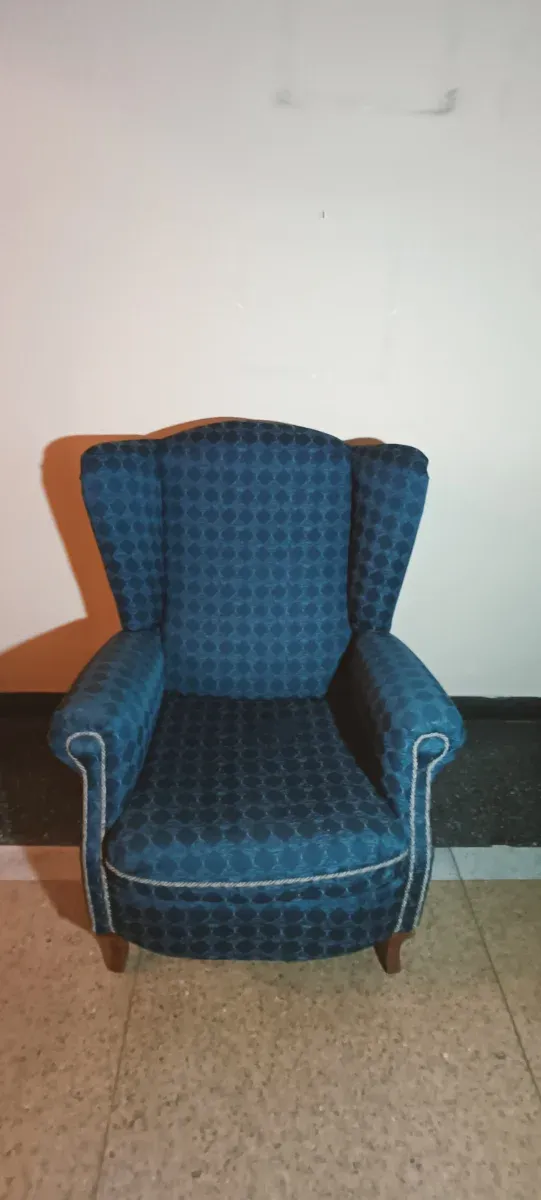 2 Sillones Antiguos Tela Azul y Blanco