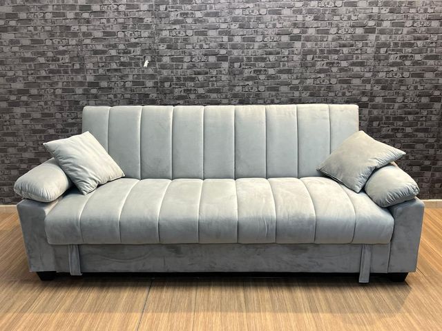 Sofá Cama Cali Terciopelo Gris o Azul – Ideal para Espacios Pequeños