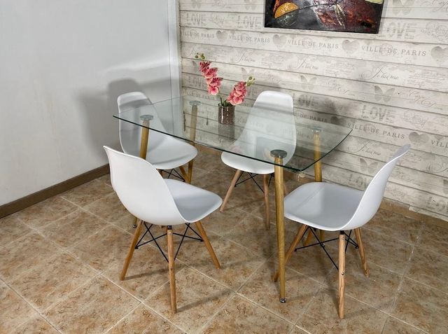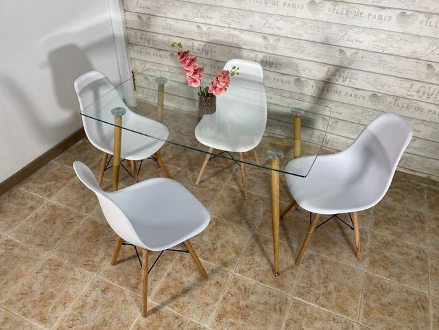 Mesa de vidrio templado nórdica de 120 cm o 140 cm con 4 sillas nórdicas