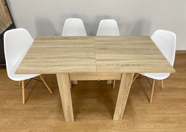 Mesa extensible 134x67cm + 4 sillas nórdicas blancas, negras o grises