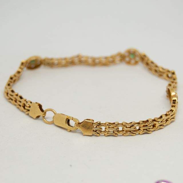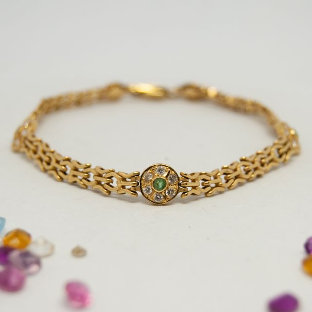 Pulsera tipo Panther con piedra verde, de oro 18K