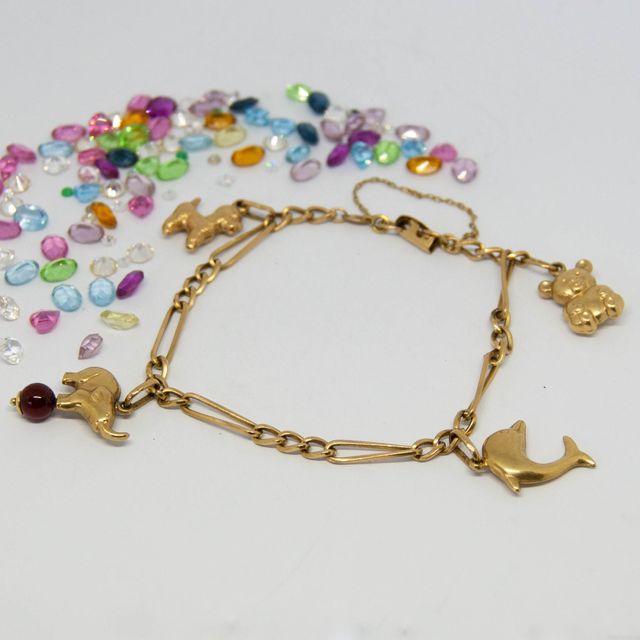Pulsera tipo cartier figuras de animales, oro 18Q.
