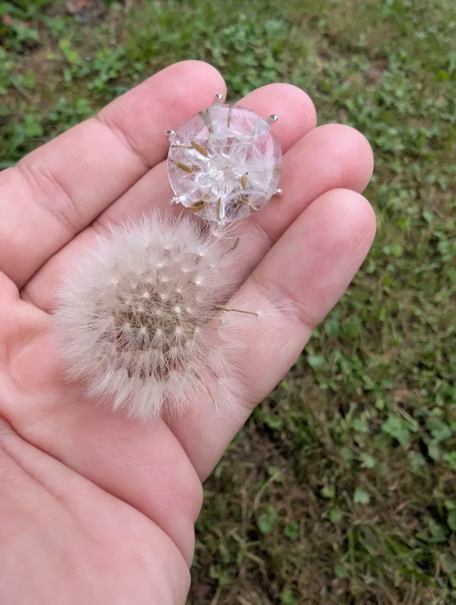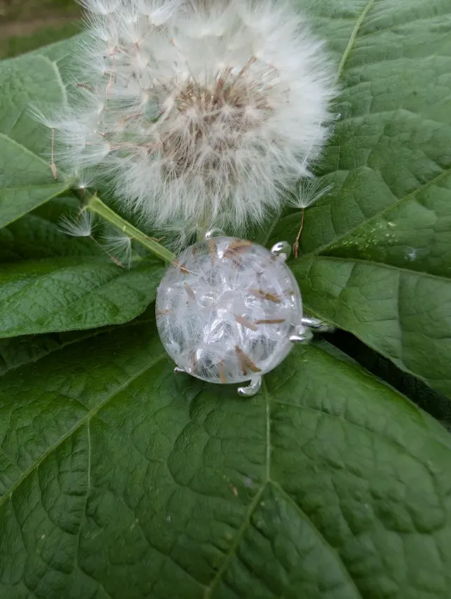 Anillo en forma de esfera con dientes de león real