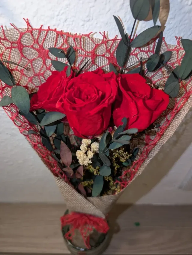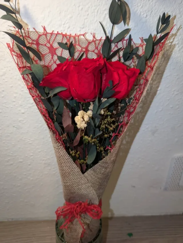 Ramo 3 Rosas Rojas Preservadas con paniculata