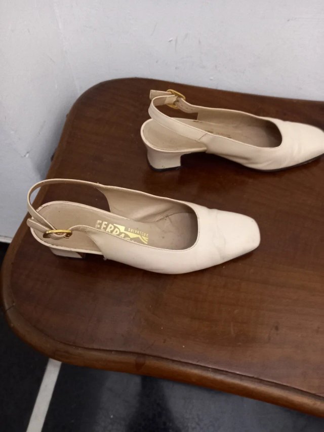 Sandalias Ferragamo Beige con Correa Trasera y Tacón Bajo
